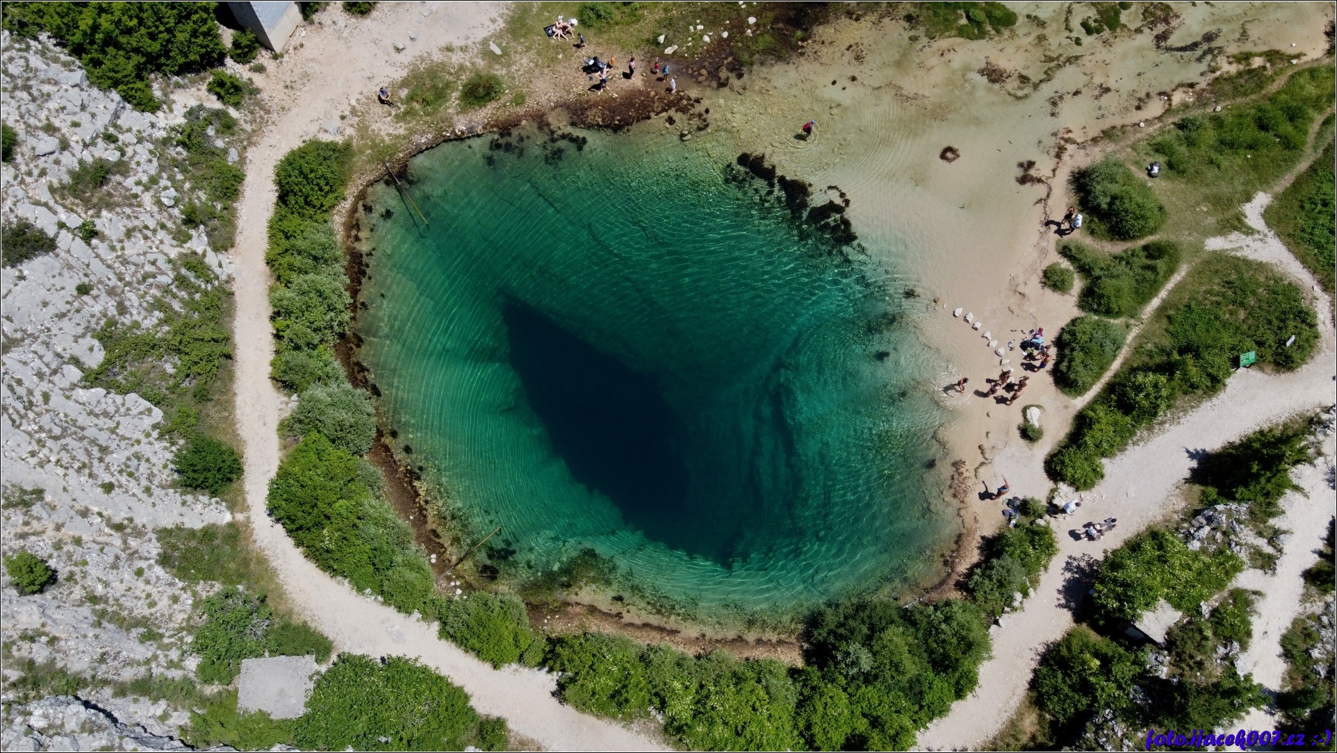 Pohled na pramen řeky Cetina z dronu.