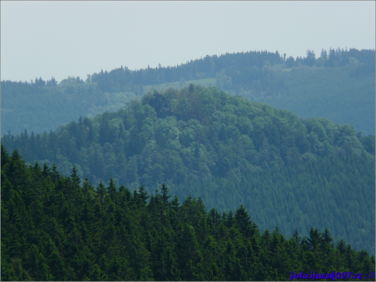 pohled na zalesněné kopce