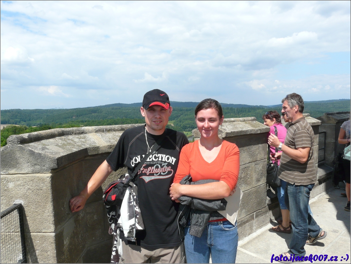 Foto dukaz že i geosektetářky které se bojí výšek mohou vylezt na věž zámku.