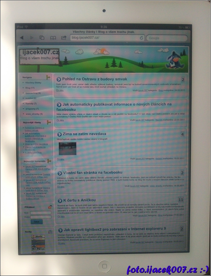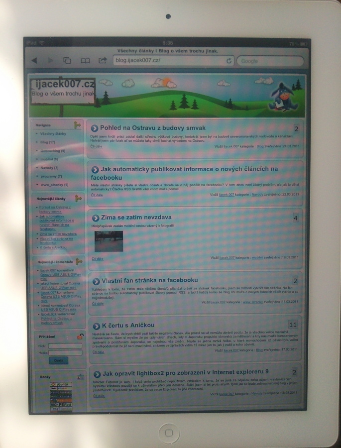 pohled na zobrazeni meho blogu na aplle ipad 2