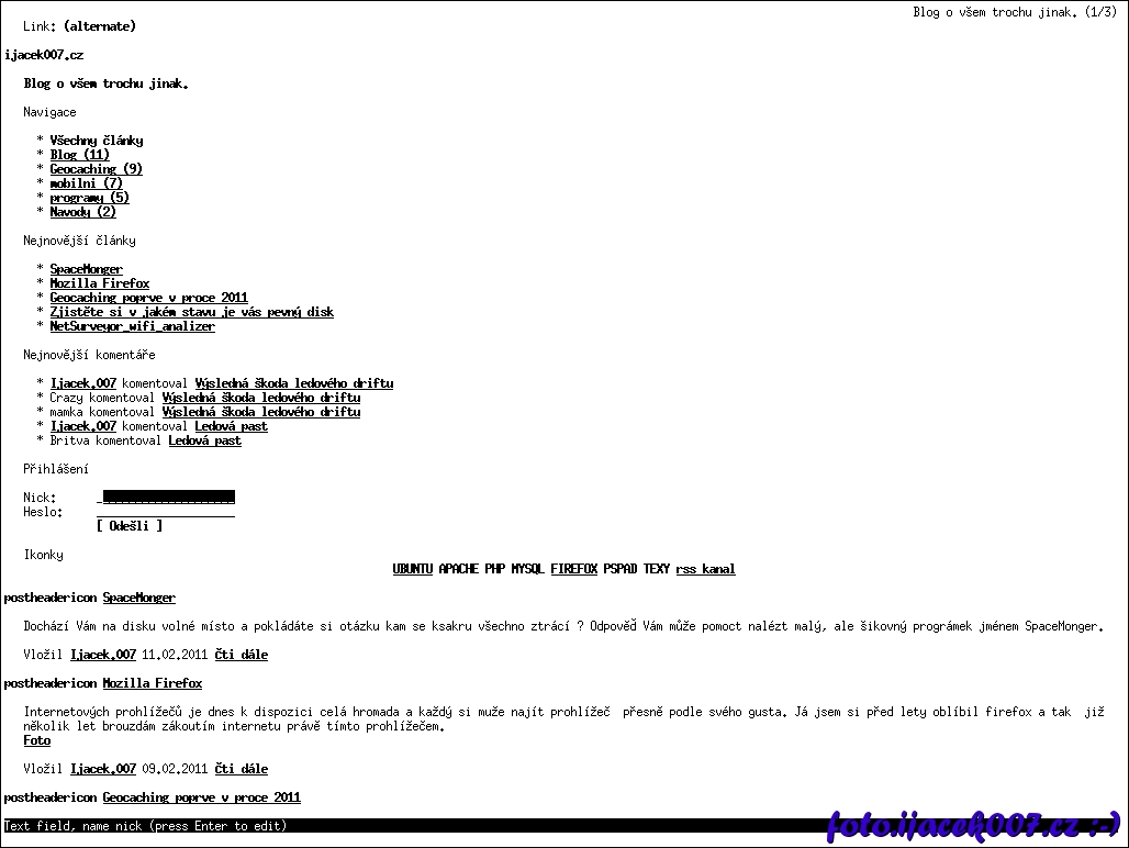 zobrazeni blogu v prohližeci elinks