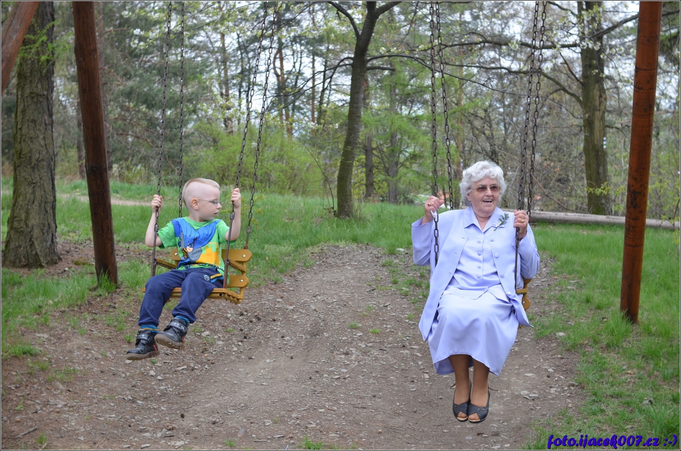 není nad to vrátit se do dětských let houpačka prostě baví i dospělé ne li babičky