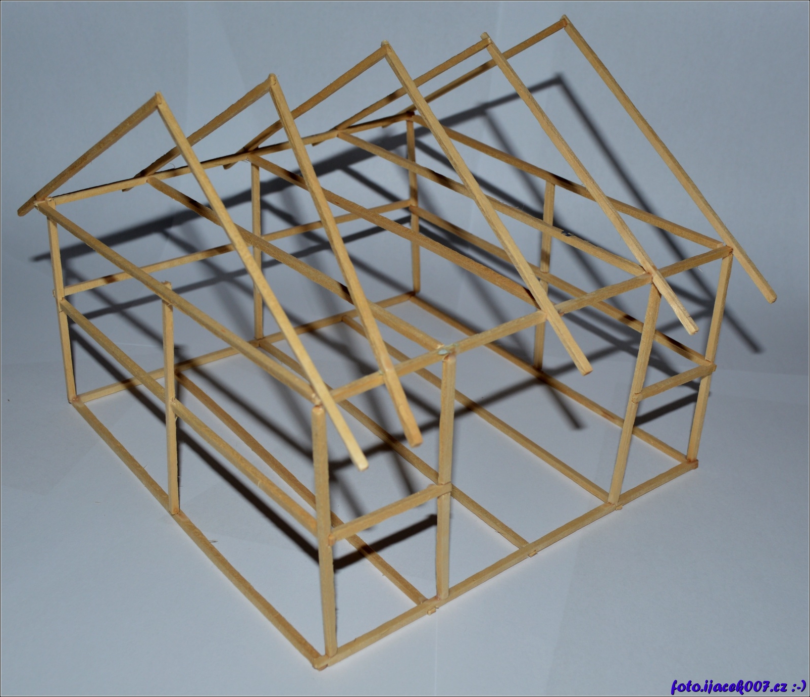 pro představu všech trámu jsem nakonec zrealizoval model pomocí krbových zápalek