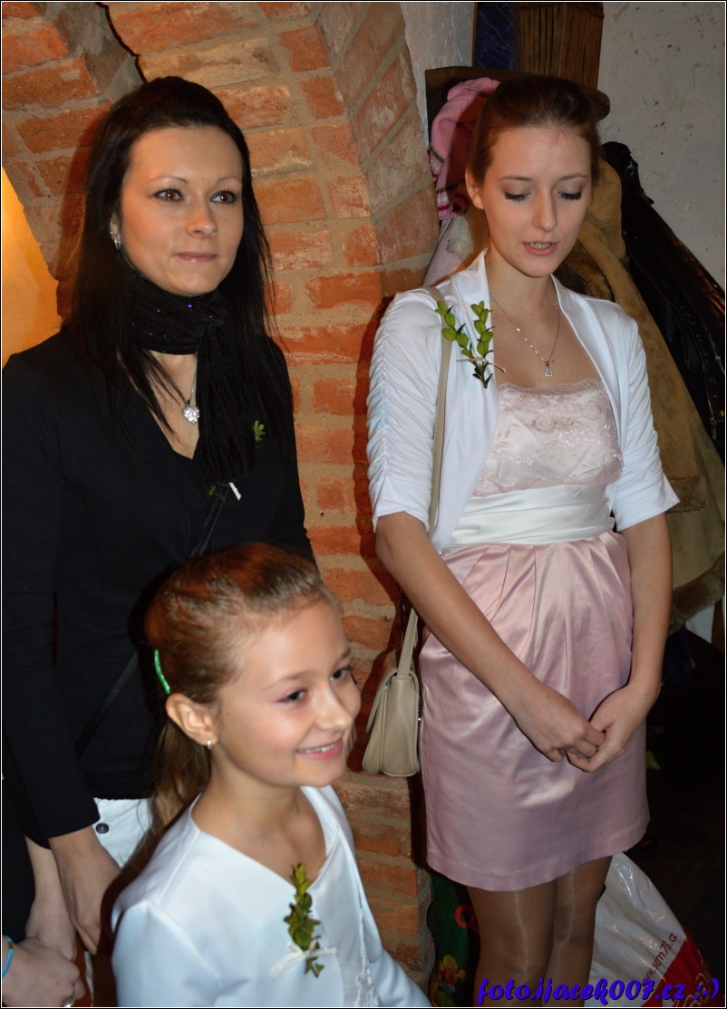 úsměvy svatebních hostů.