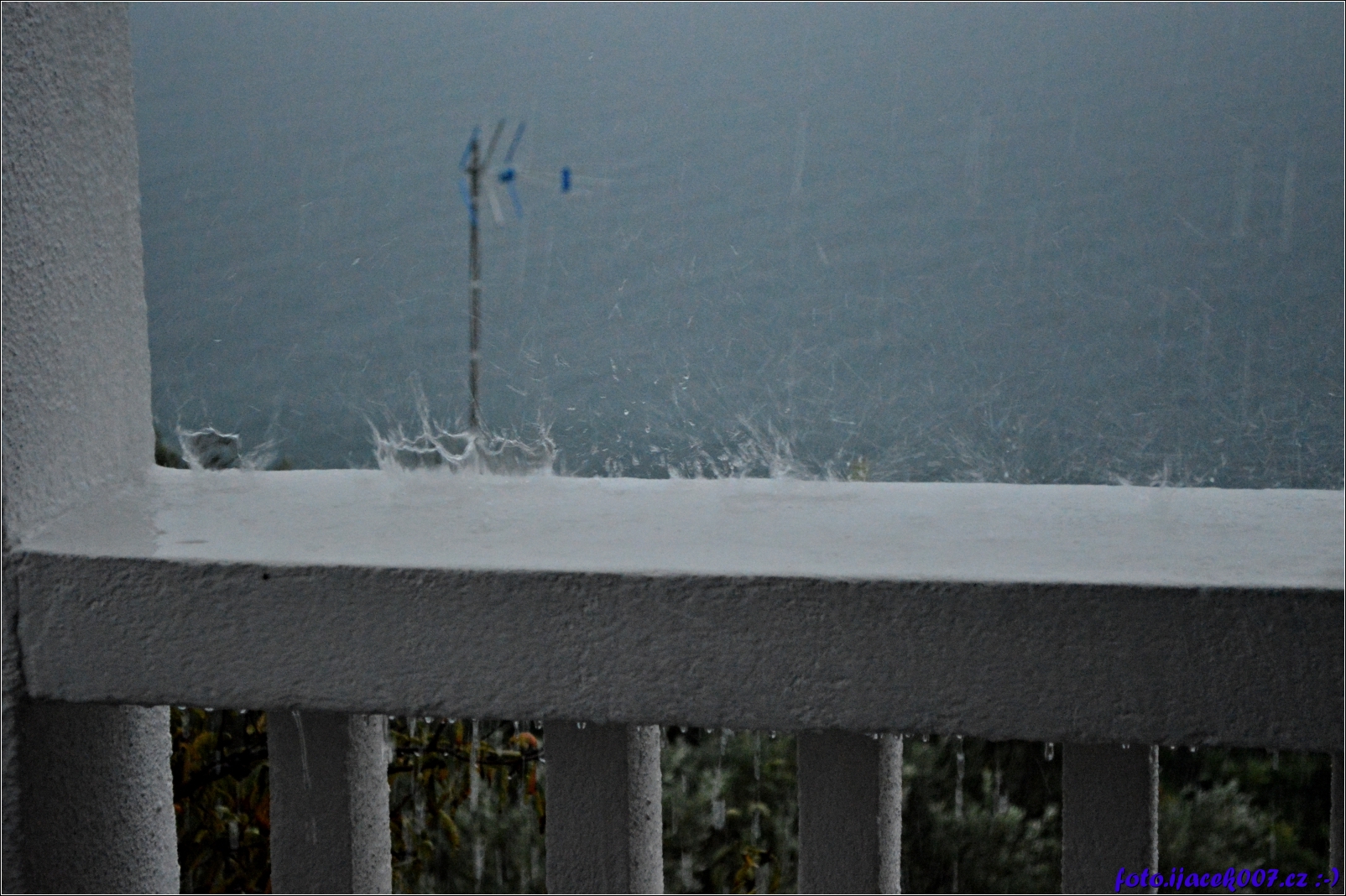 pohled na obrovské kapky zářijového deště na chorvatském pobřeží