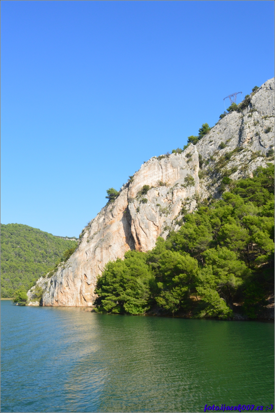 pohled na mohutné skály do kterých se řeka Krka zakousává.