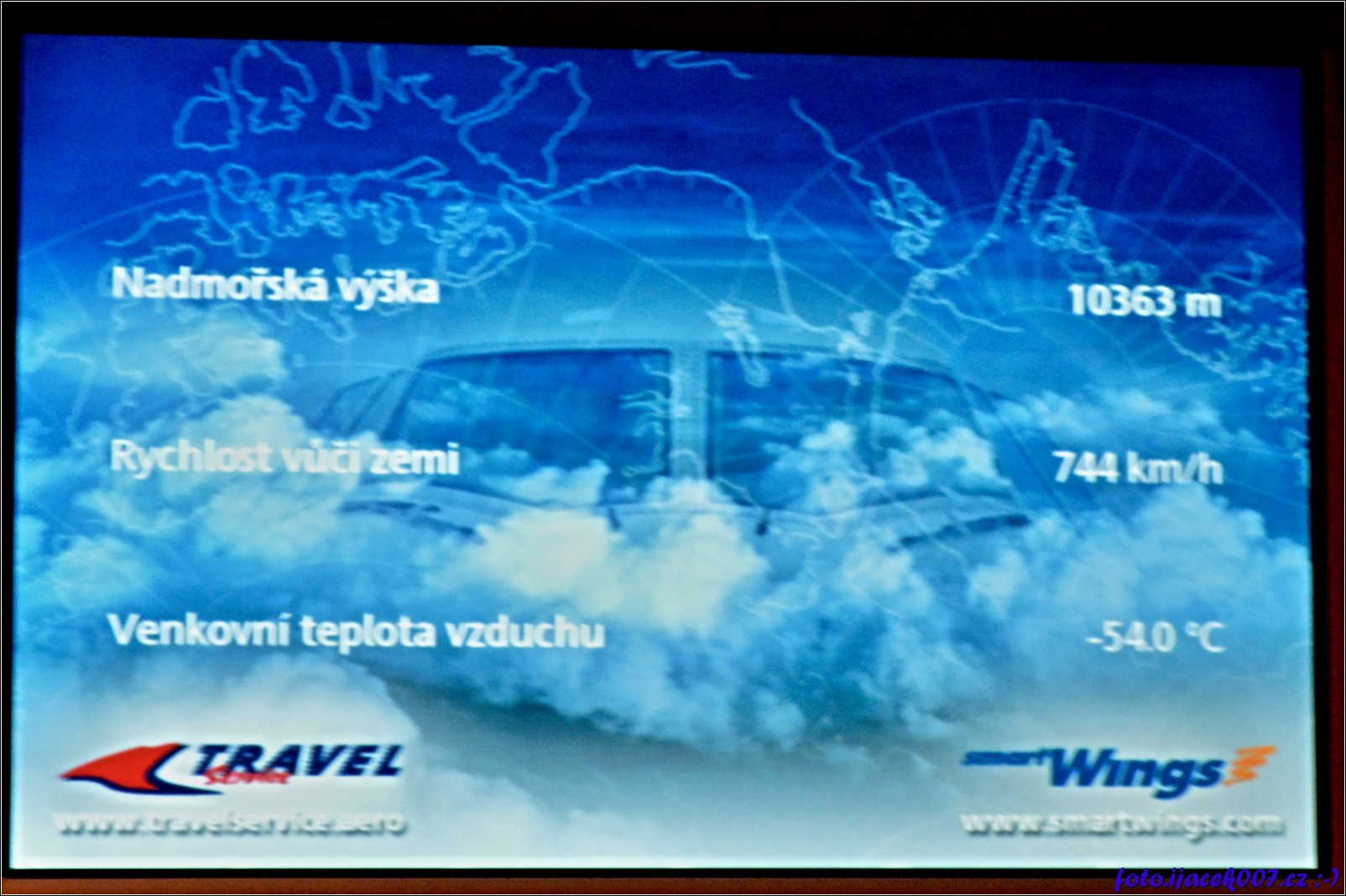 informace o průběhu letu nebo například o aktuální teplotě se občas zobrazují na obrazovkách v letadle.