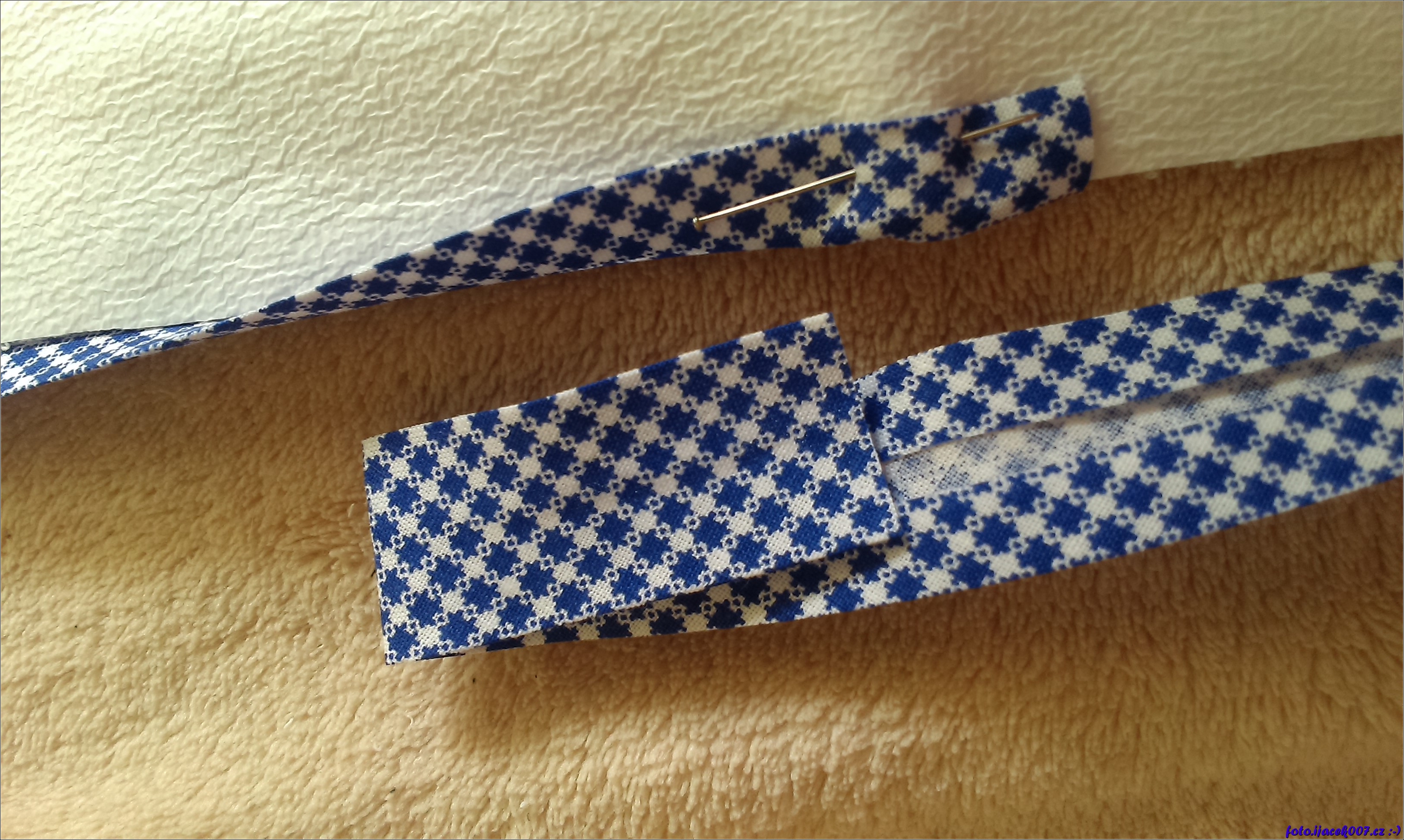 přišpendlení lemovky před šitím