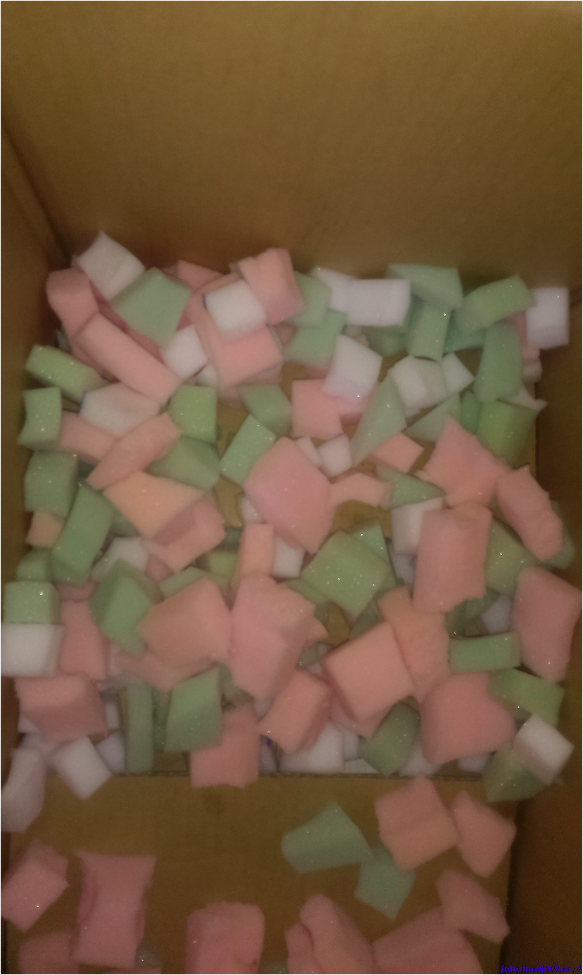 molitan nastříhaný na různé kousky vytvořil výplň podsedáku