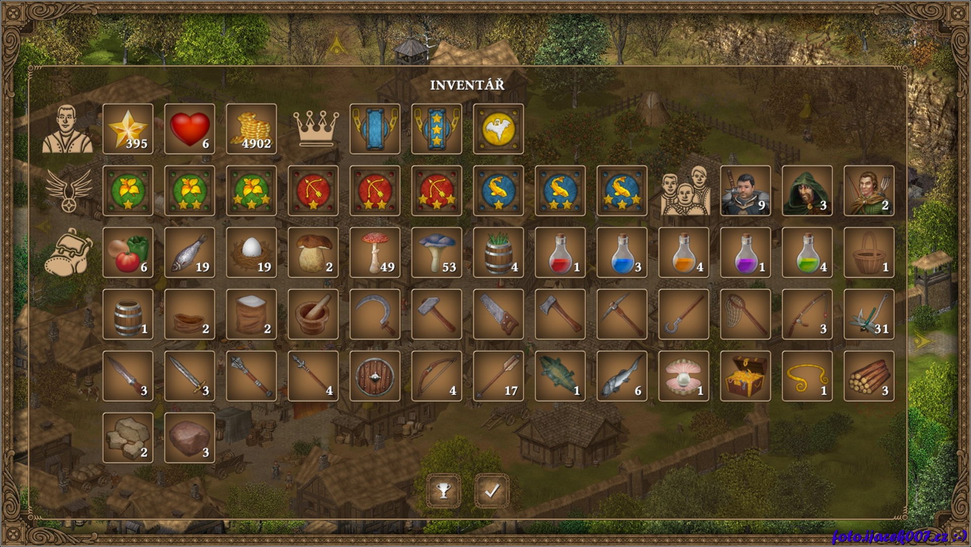 pohled do plného inventáře hlavního hrdiny