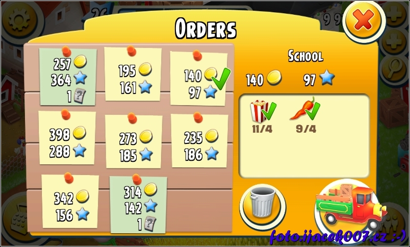 pohled na nástěnku kde vypěstované plodiny můžete nechat odvést a dostat tak za ně odměnu.