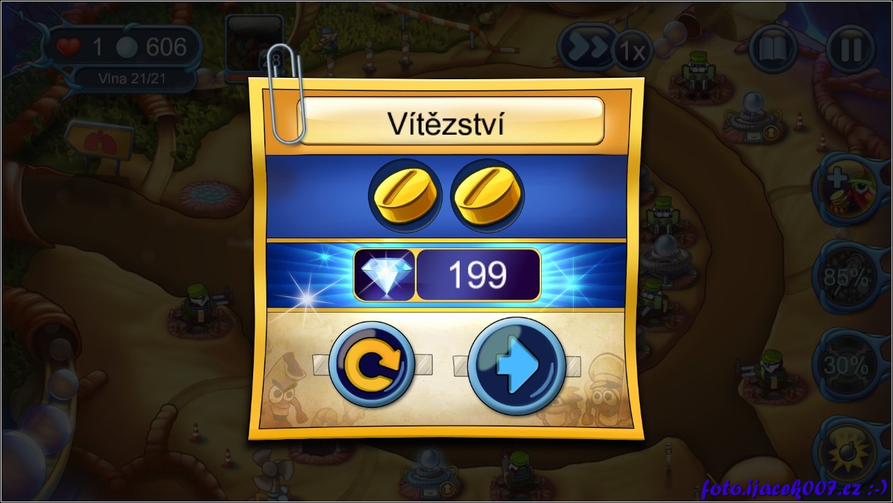 informace o dokončení kola a získané odměně