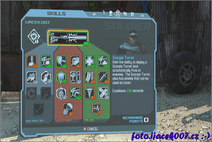 pohled na strom dovednosti a vylepšování postavy