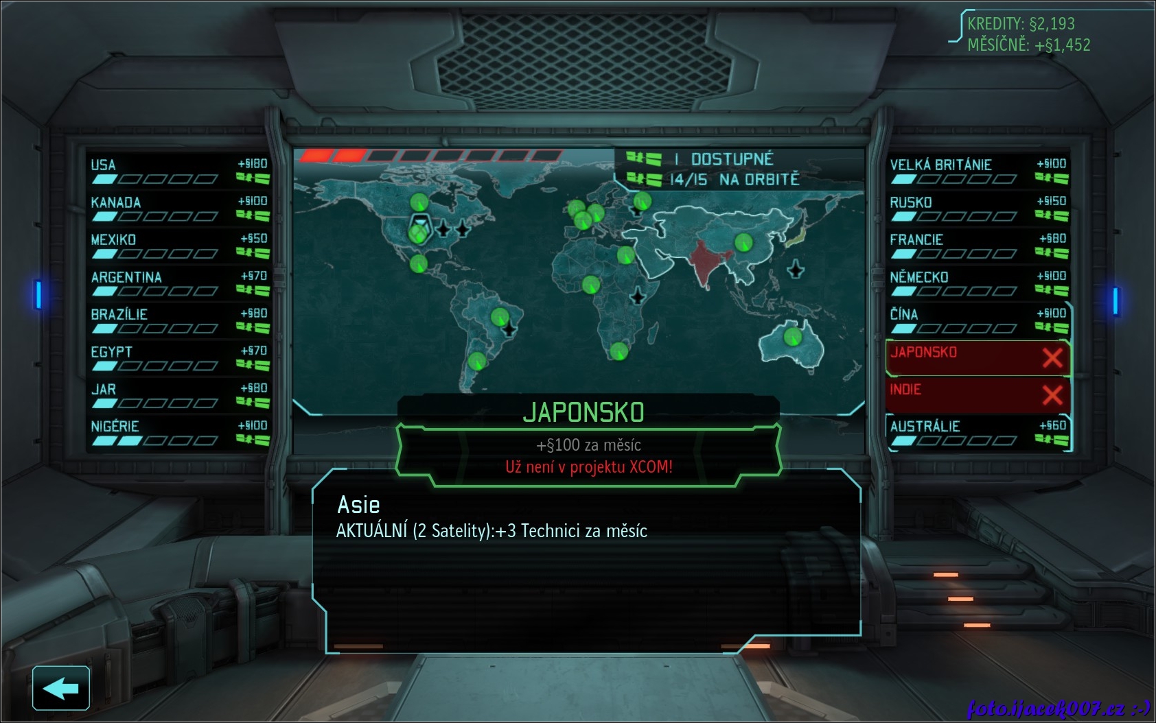 informace o satelitech o členských zemích i o financích