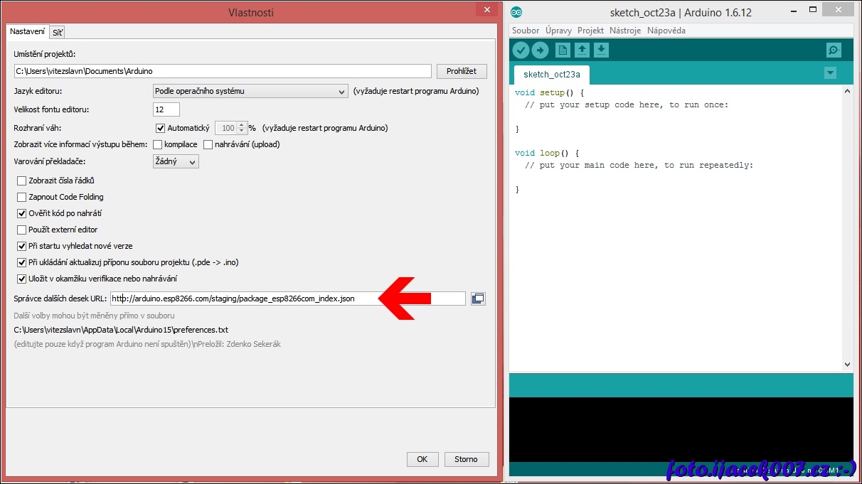 arduino nastaveni spravce desek