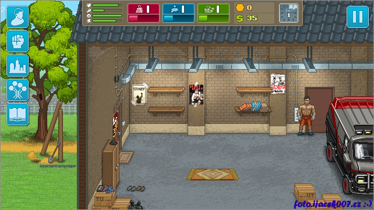 pohled na prázdnou garáž ze startu hry.