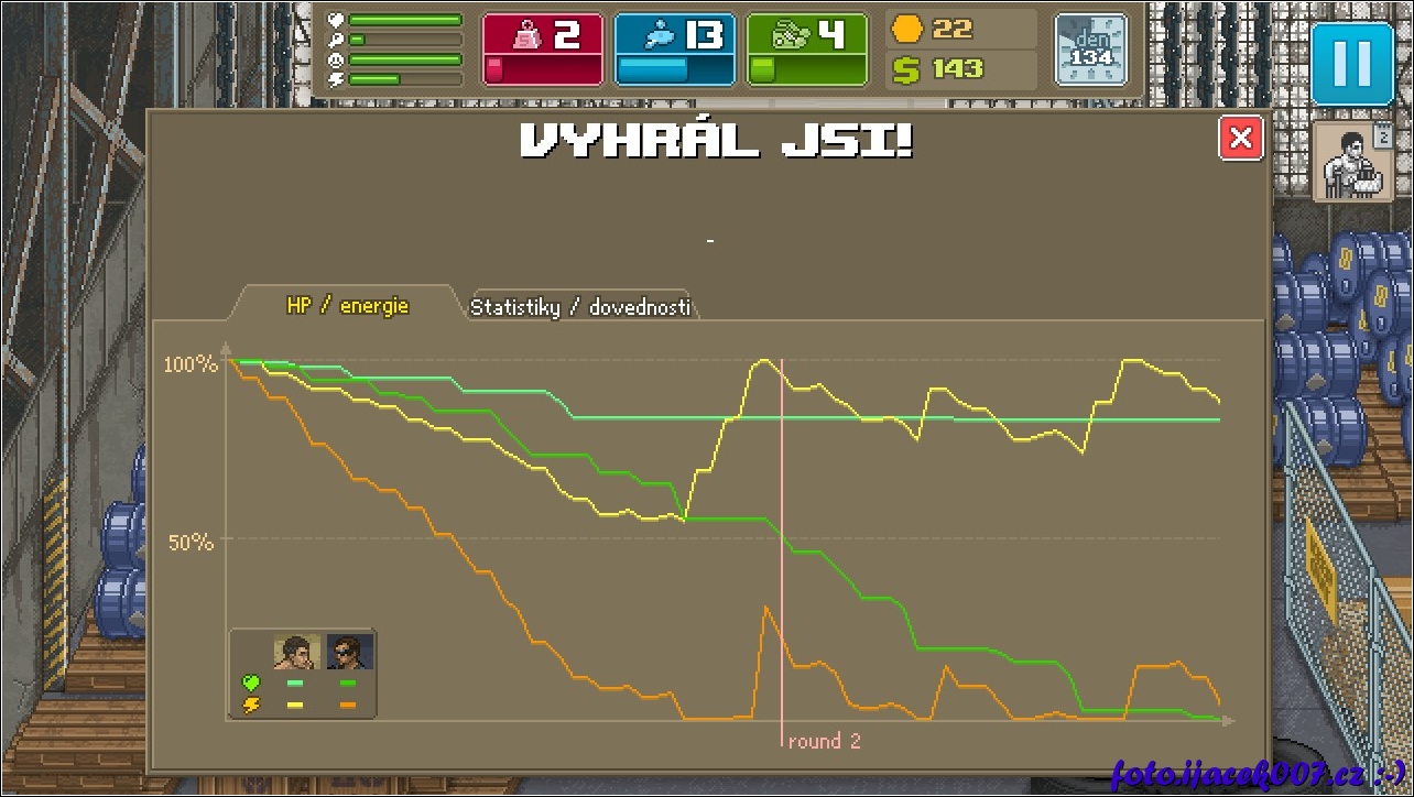 po boji si mužete prohlédnout jak se vašemu bojovníkovy dařilo.