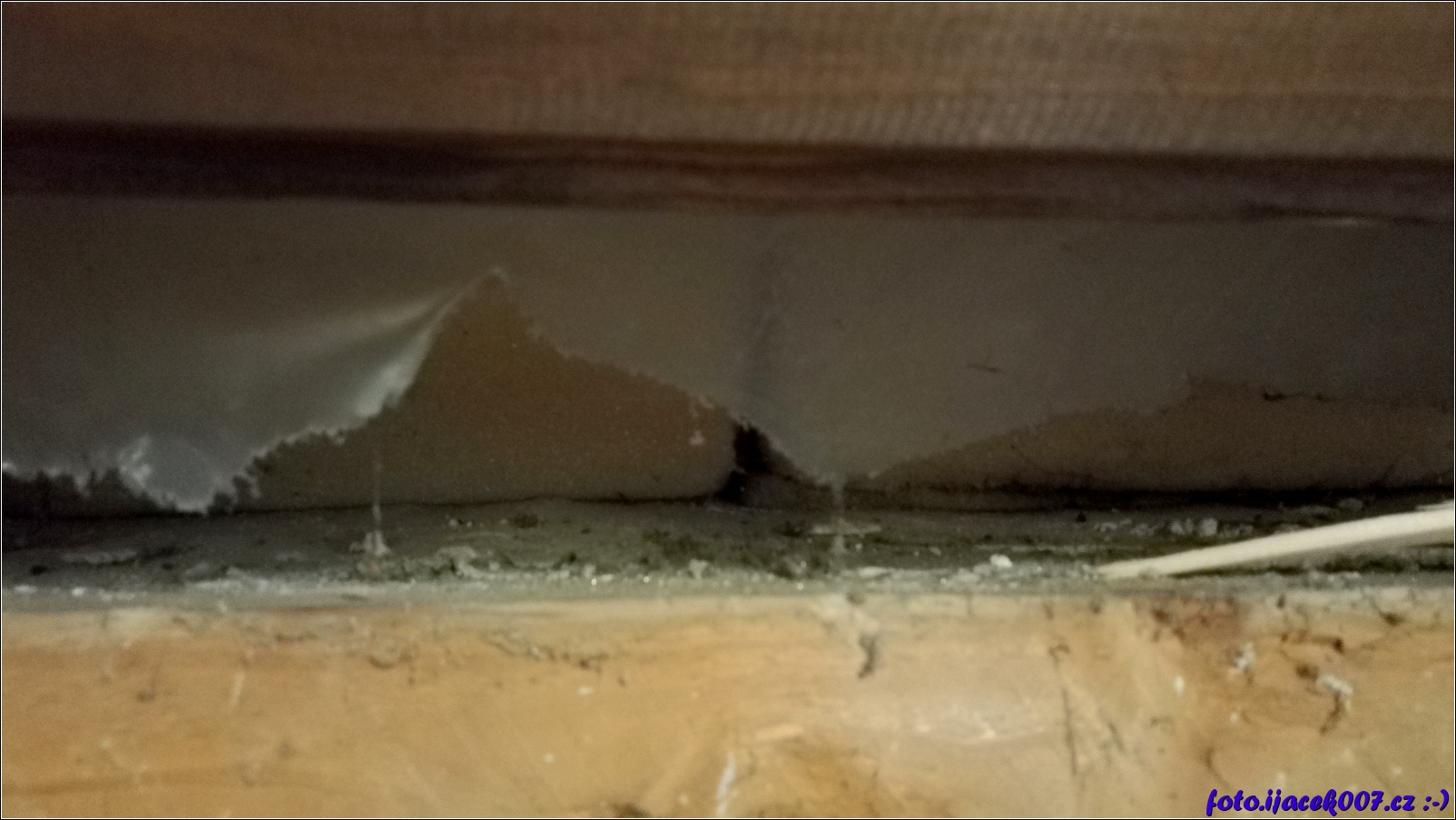 detail na část staré izolace střechy
