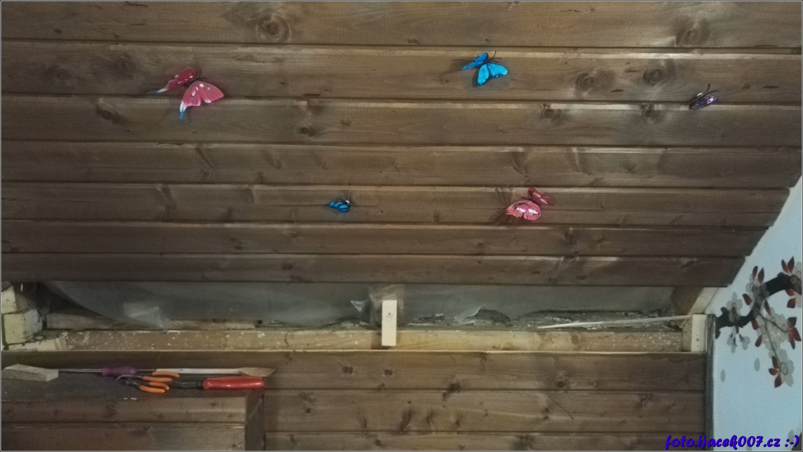 pohled na starou izolaci po sundání části obložení