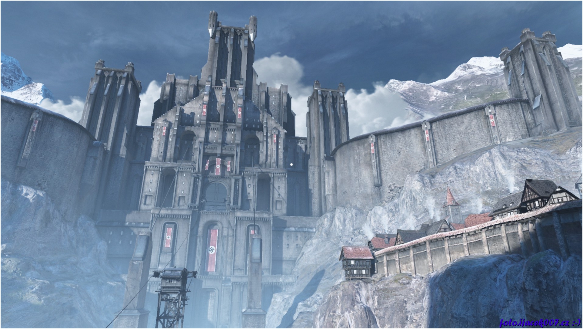 majestátní hrad a pohled na lanovku která je jedinou cesto do této pevnosti.