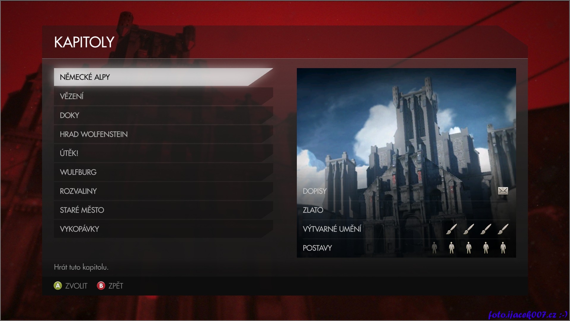 přehled všech kapitol ve hře