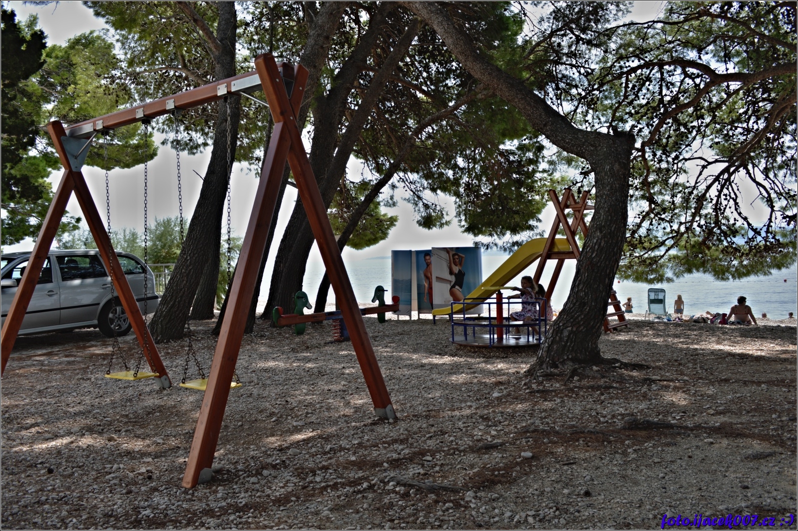Ve vesničce najdete i dětské hřiště s pár atrakcemi které dovedou na chvíli zabavit vaše ratolesti.