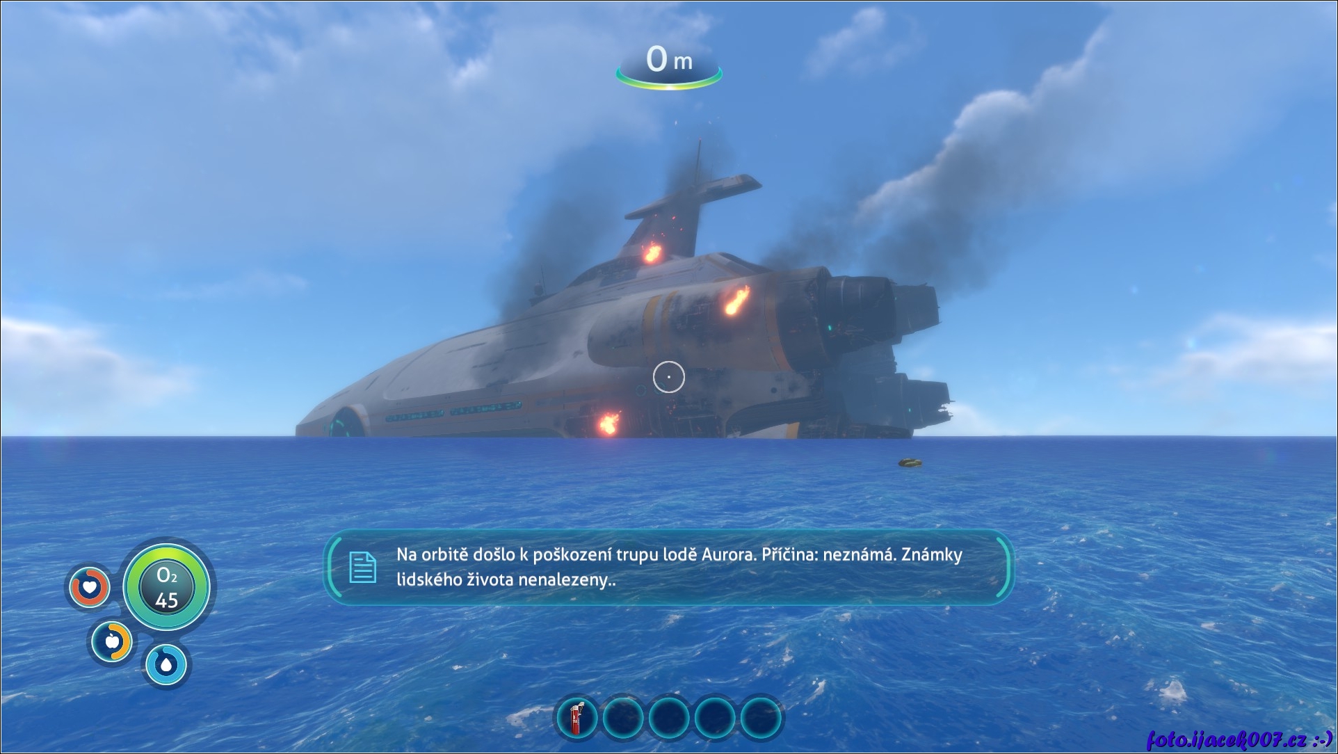 Pohled na poškozenou loď