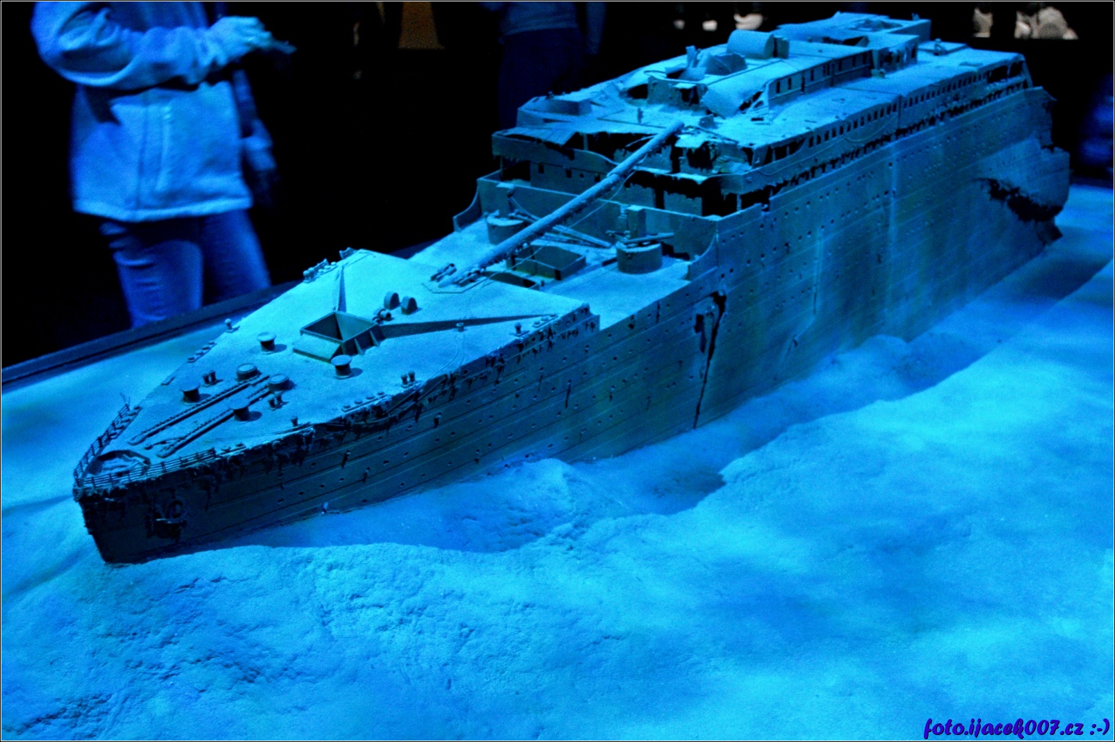 velký model vraku lodi ležící více jak 4 000 metru pod hladinou moře.
