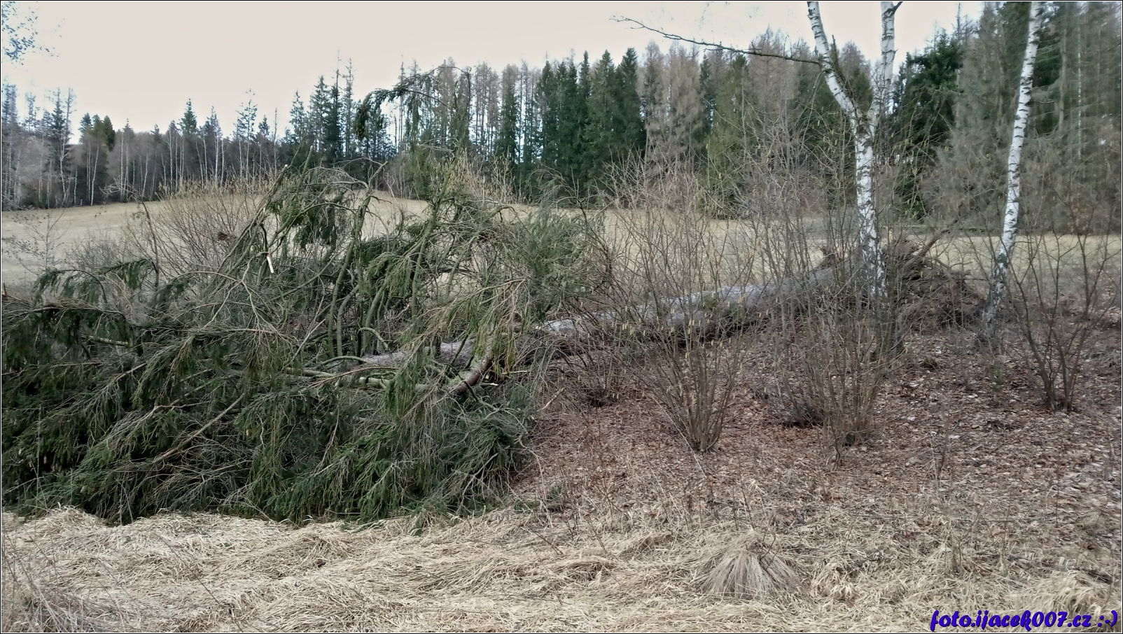 Pohled na popadané stromy