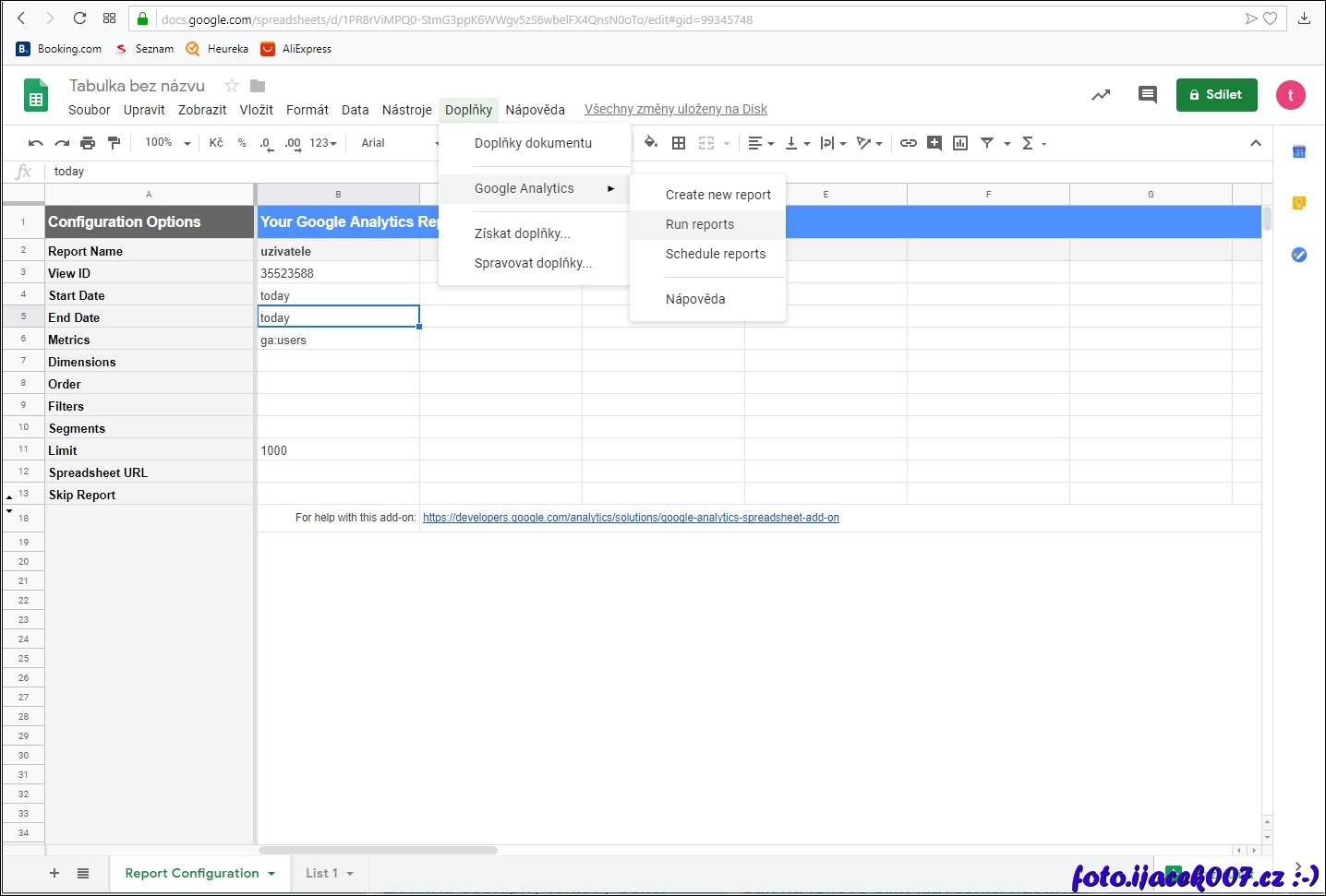 Google Analytics v tabulkách
