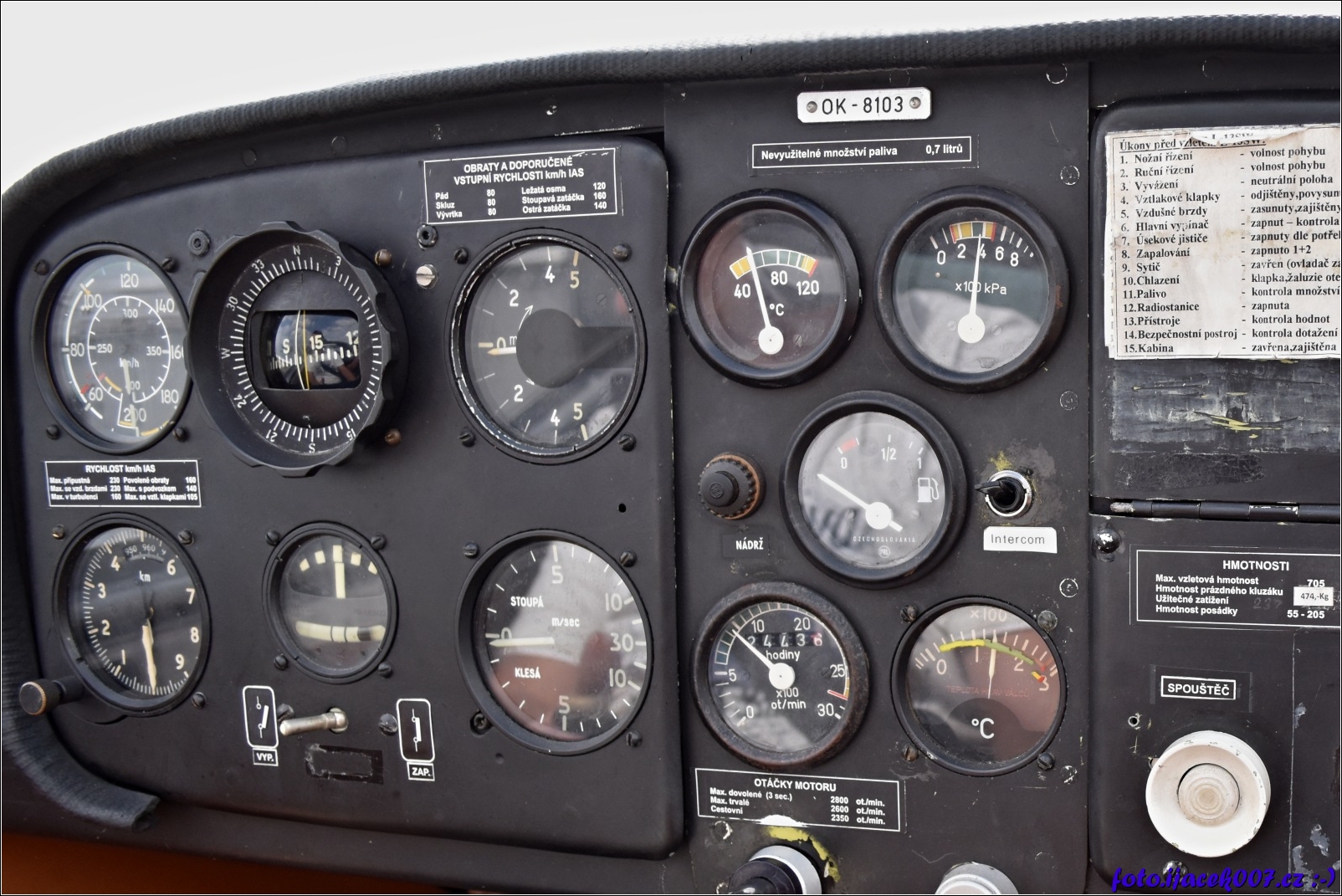 pohled na přístrojovou desku motorového kluzáku.