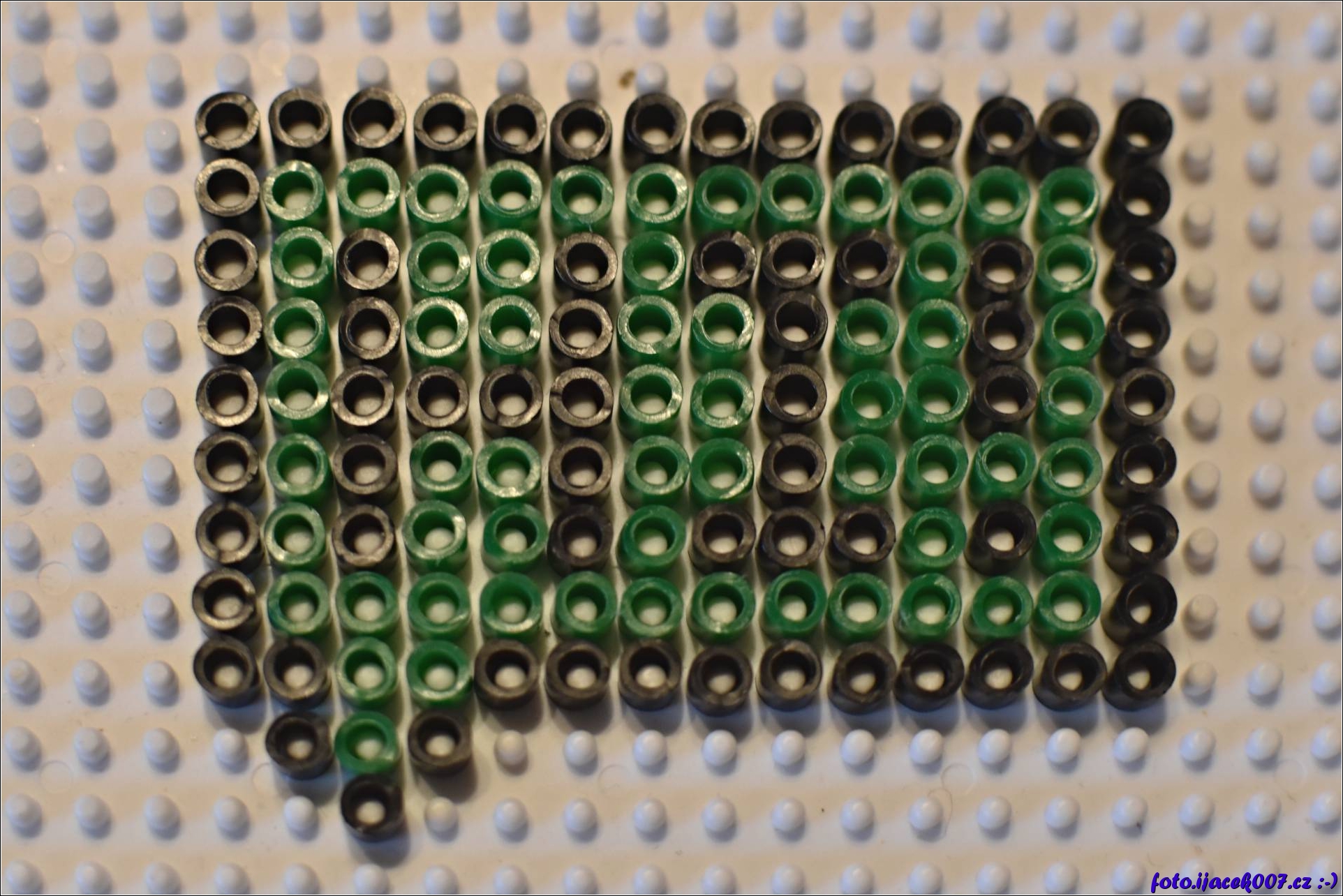 Vzor bubliny s nápisem HI z korálků Pyssla.