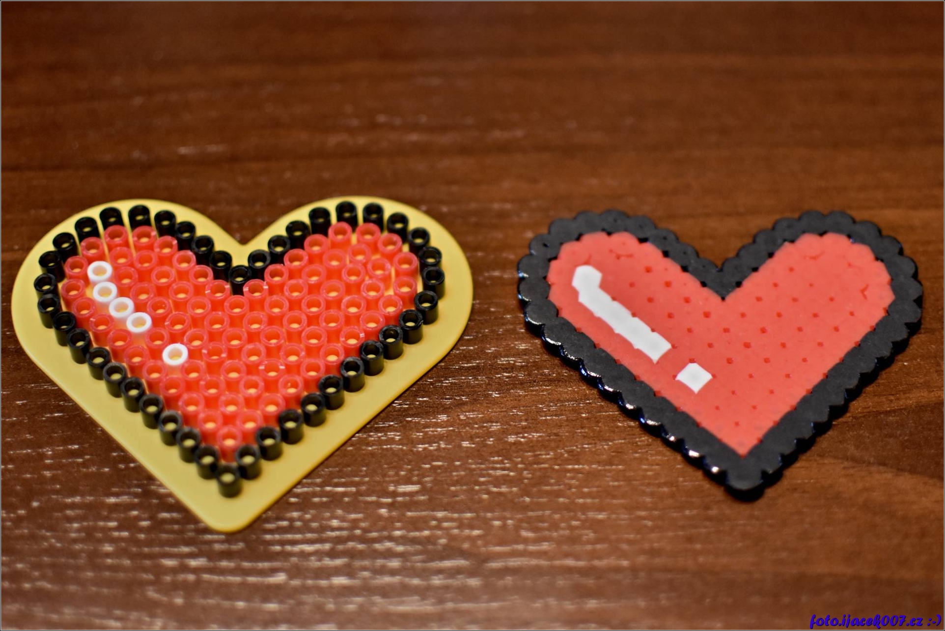 Jedno z moha srdíček z korálku Pyssla
