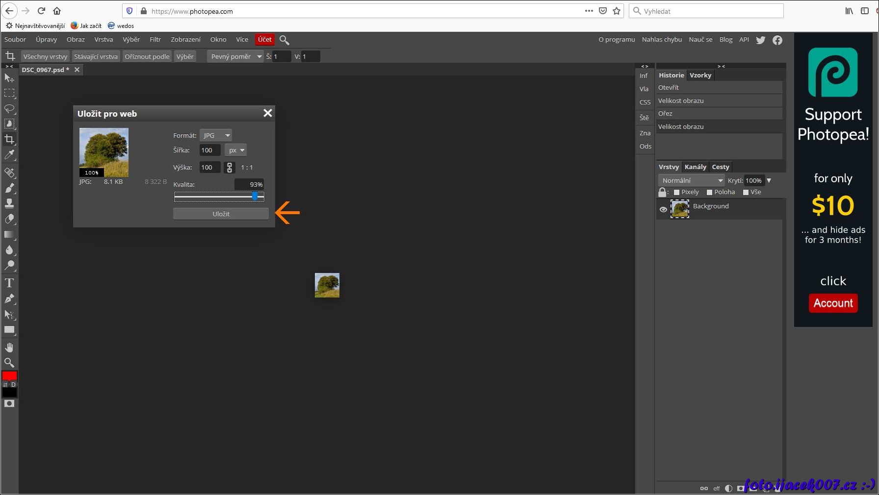 Před finálním vygenerováním obrázku v editoru je nutné nastavit uroveň kvality kterou bude mít výsledný Jpg soubor.