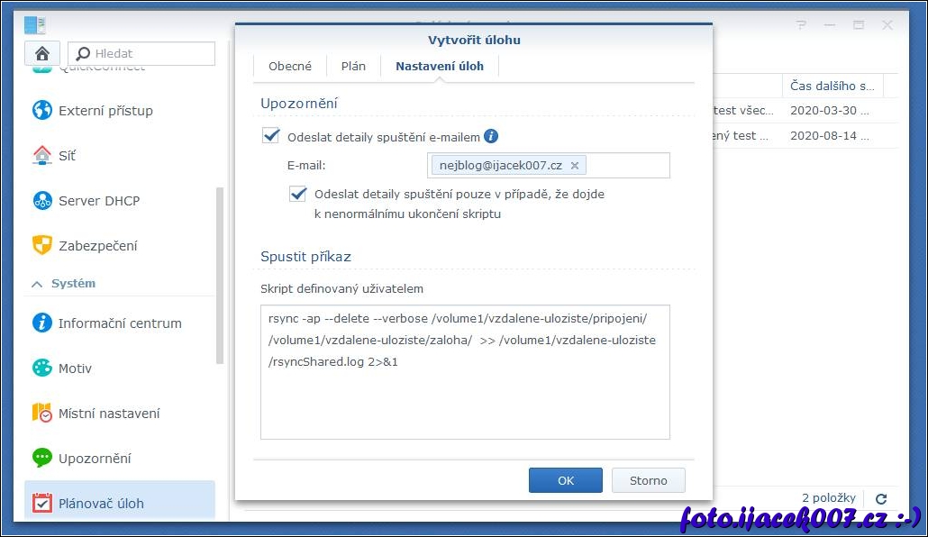 nastavení nové plánované ulohy záložka nastavení uloh