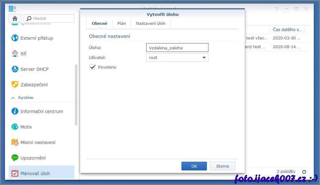 Nastavení záložky obecné v nové plánované uloze.