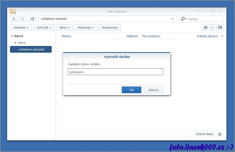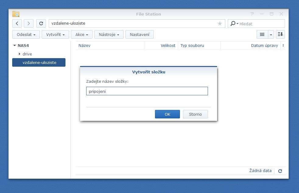 Prostředí File Station a vytoření složky.