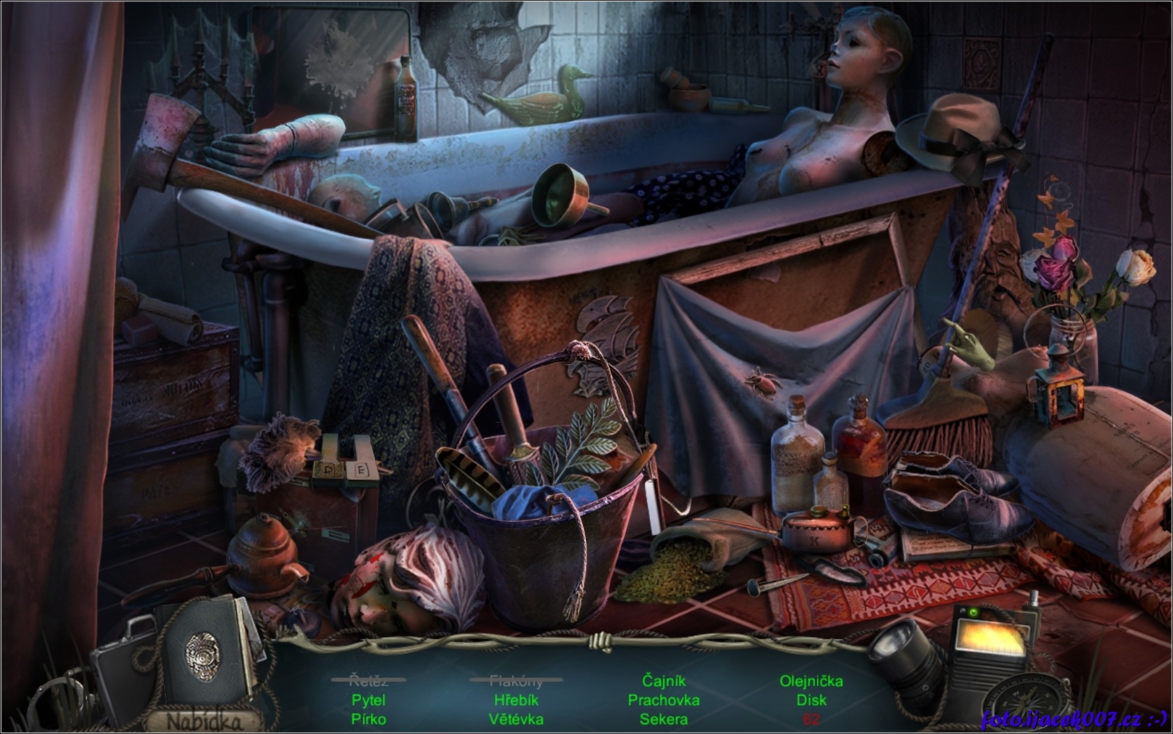 Jeda z lokací ve hře a seznam hledaných věcí.