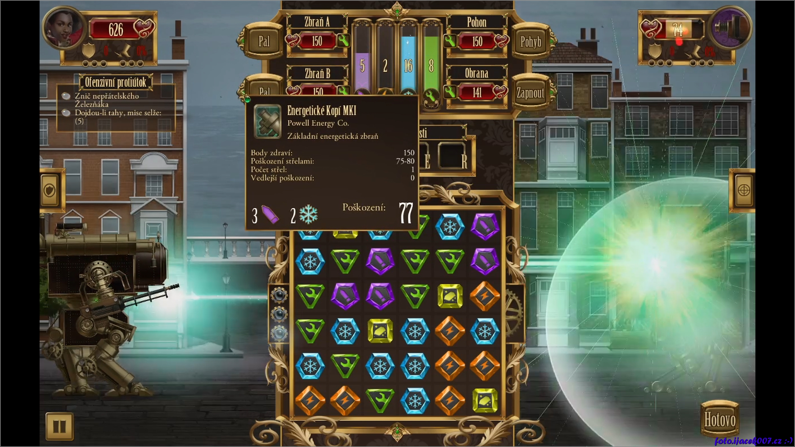 zásah nepřítele energetickou zbraní