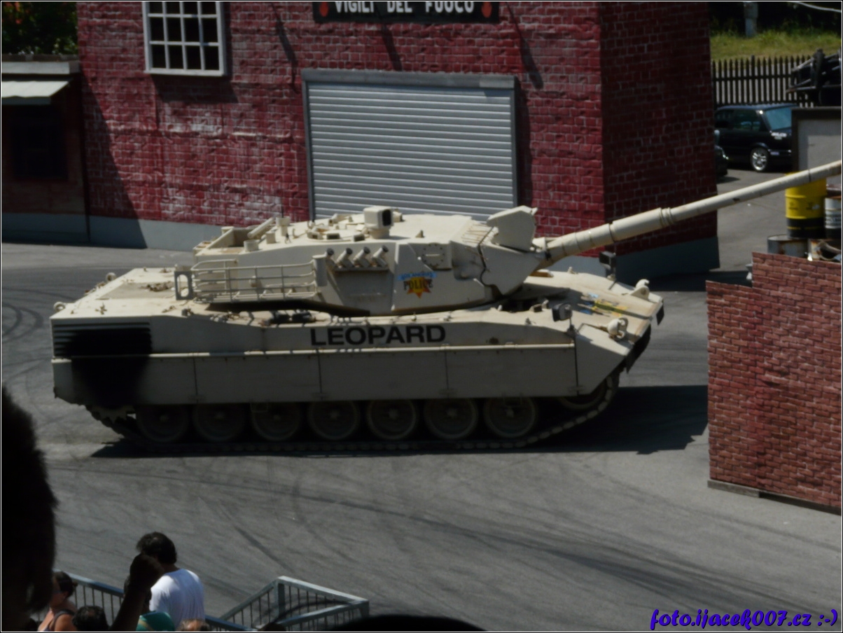součástí kaskaderské šou je u skutečný tank