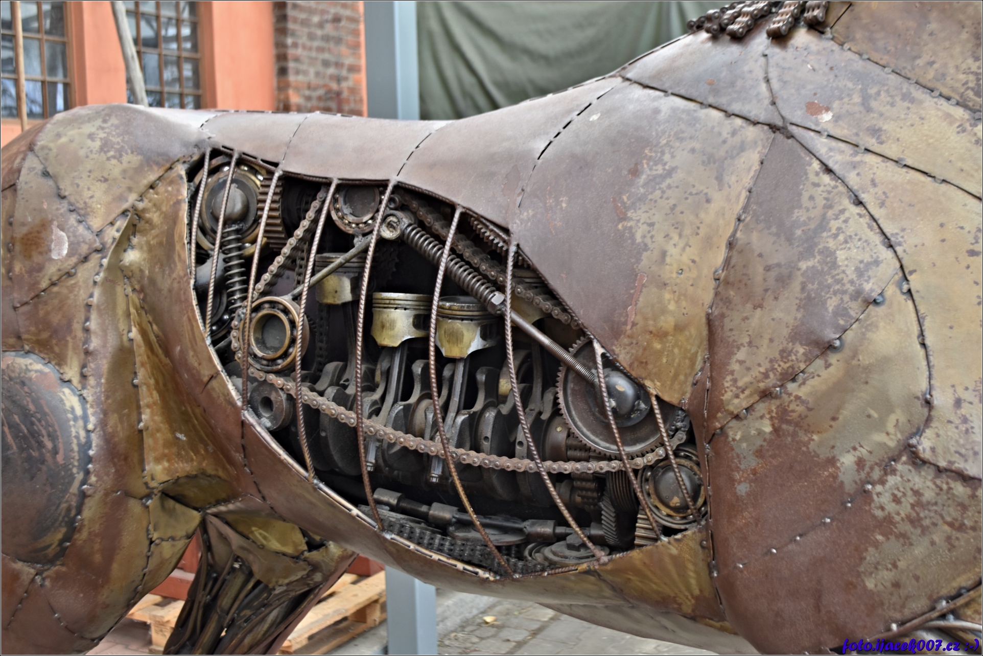 socha koně obsahuje vyřez na motor