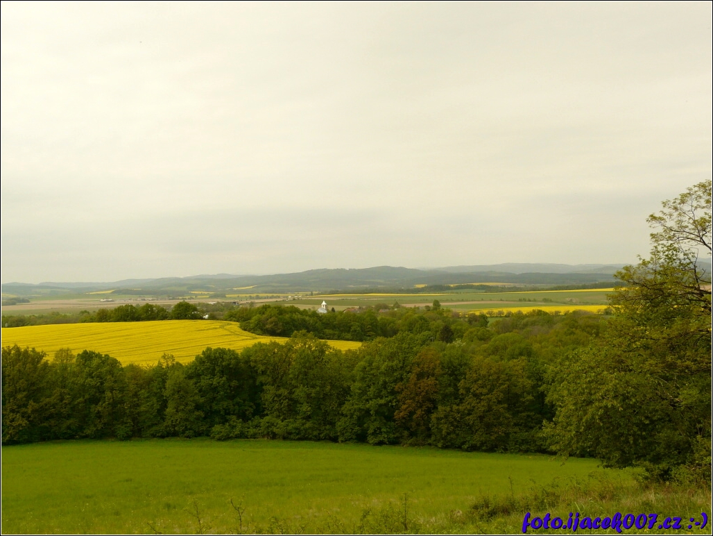 pohled na louky lemující pásy stromů