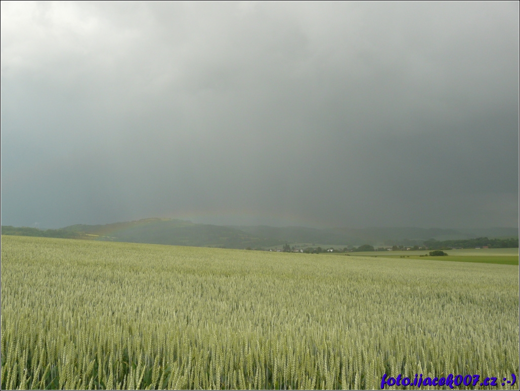 pohled na blížící se oblačnost uprostřed pole