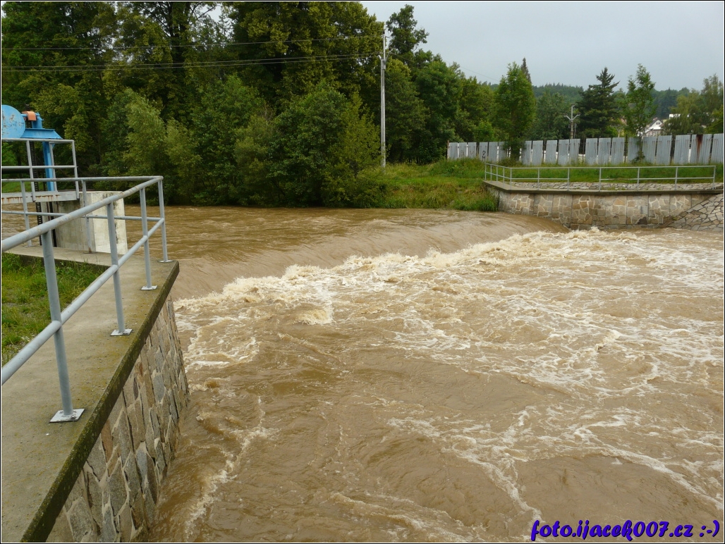 Pohled na jez v kostelci 1 povodnový stupen.