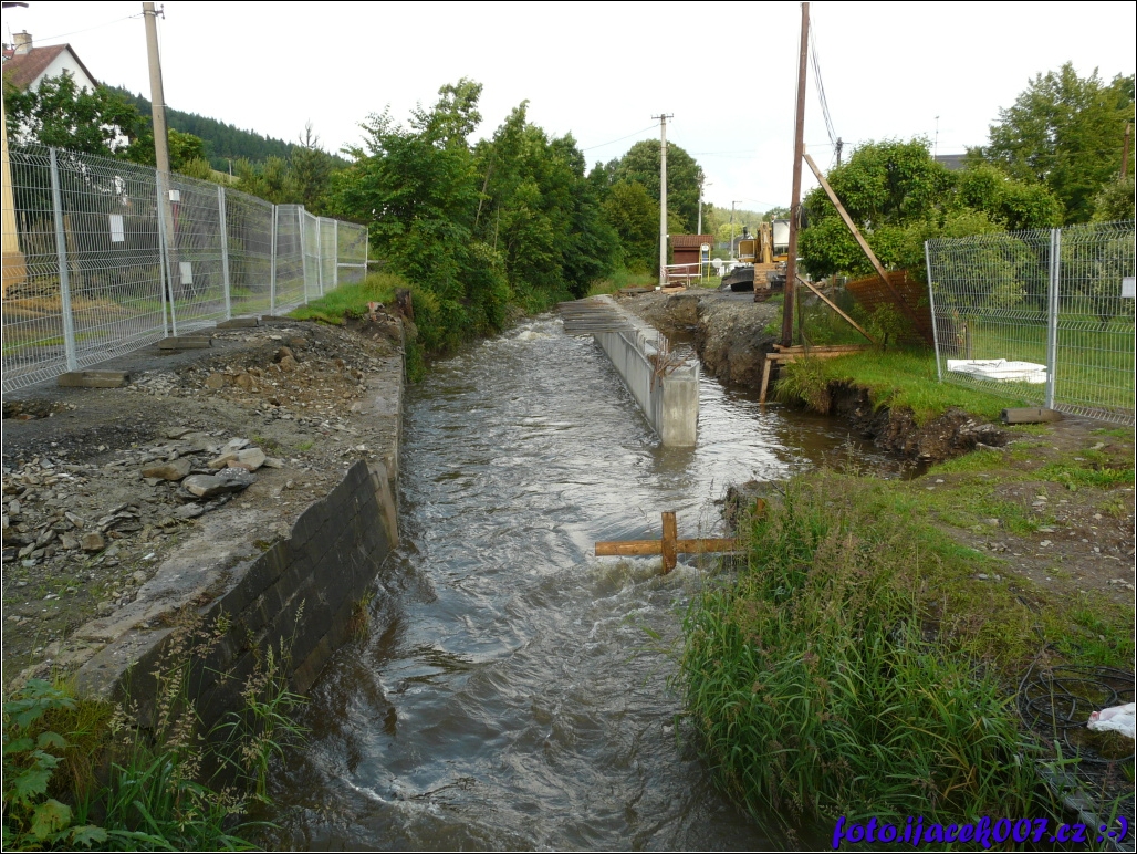 Zvýšená hladina místního potoku v Krasově