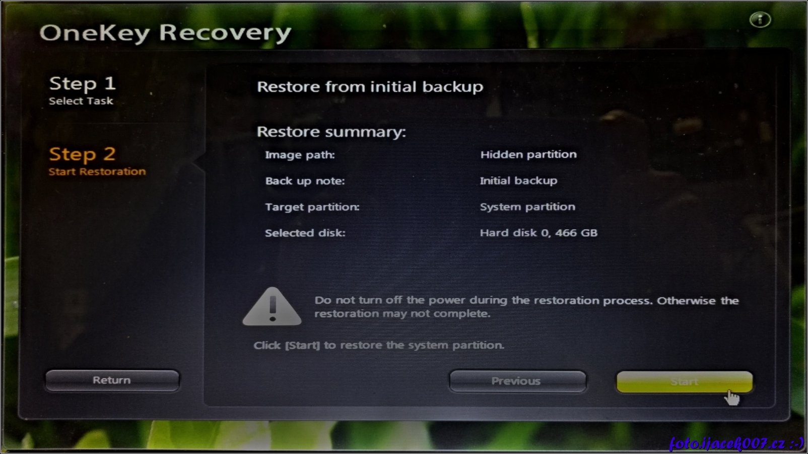 start továrního nastavení