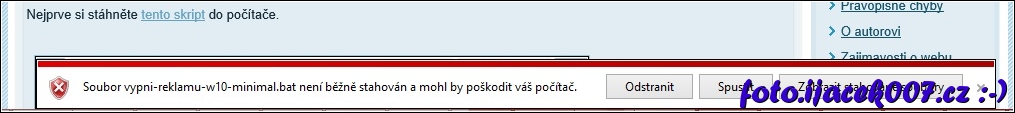 upozorněni na stažení a spuštění potencionálně nebezpečného souboru.