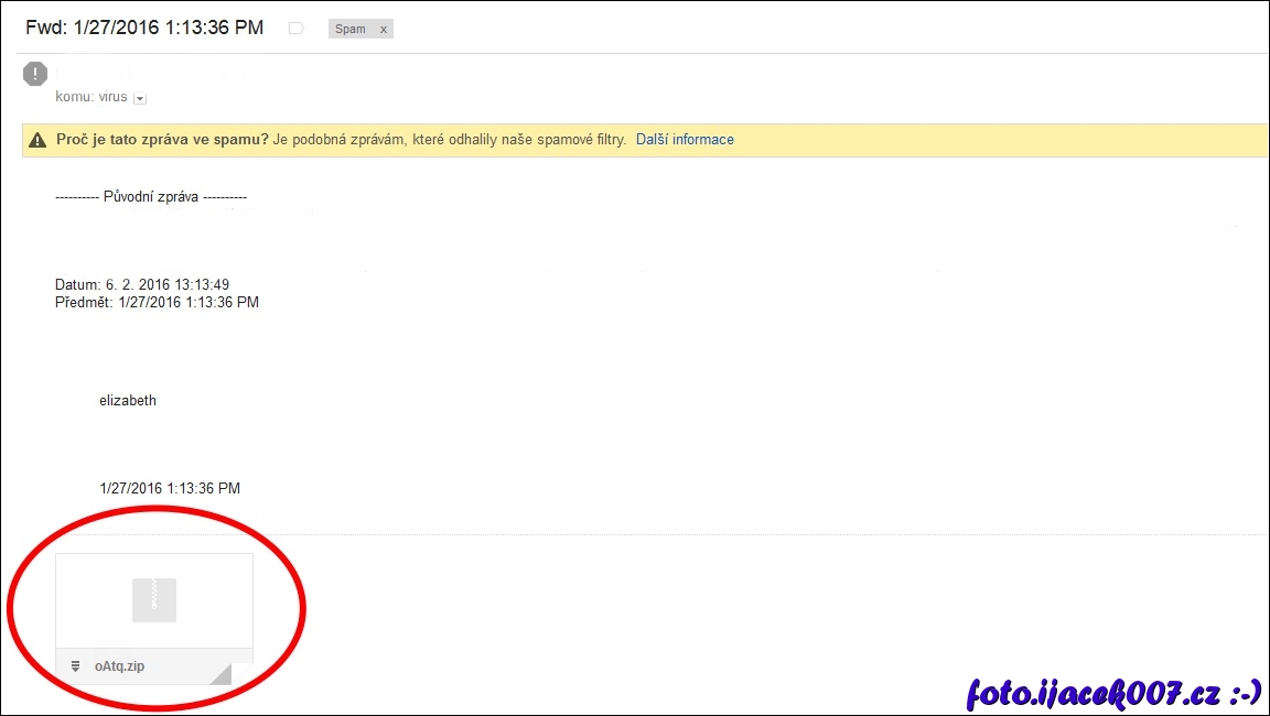 email s zákeřnou přílohou obsahující Ransomware