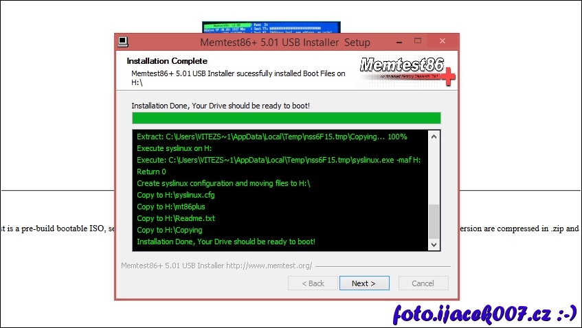 vytvoření USB bootovacího disku dokončeno