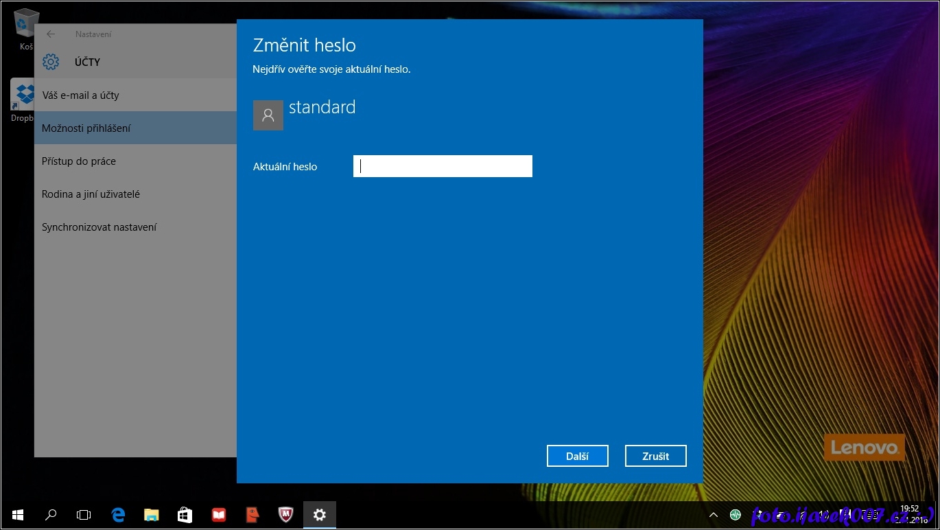 dialog na vložení starého hesla při nastavení nového hesla